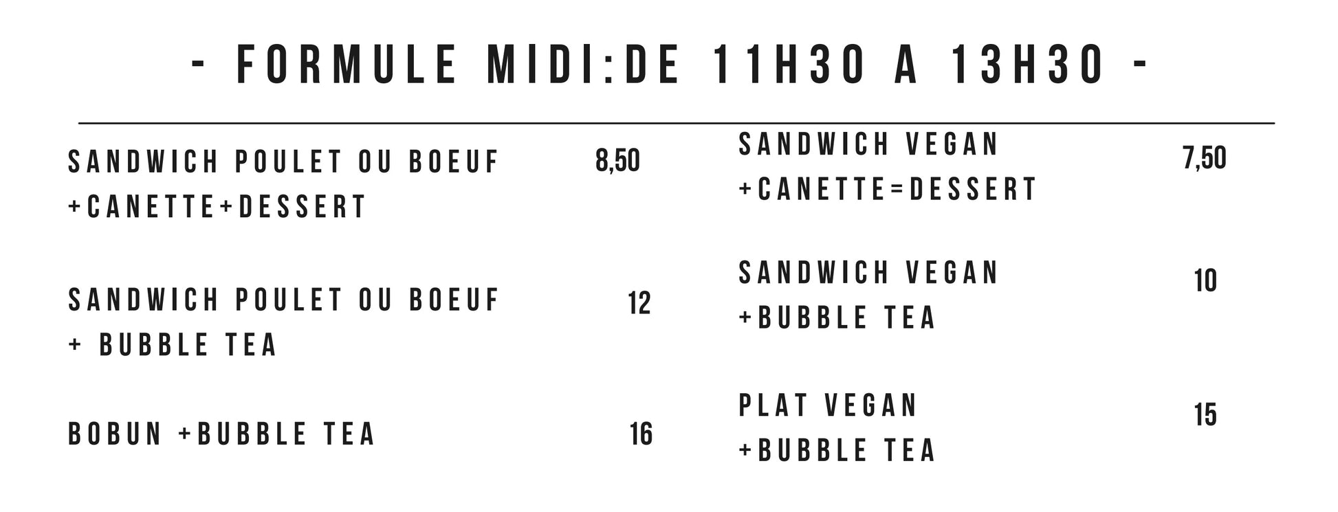 Cette formule du midi n'est valable qu'entre midi de 11H30 à 13H30.